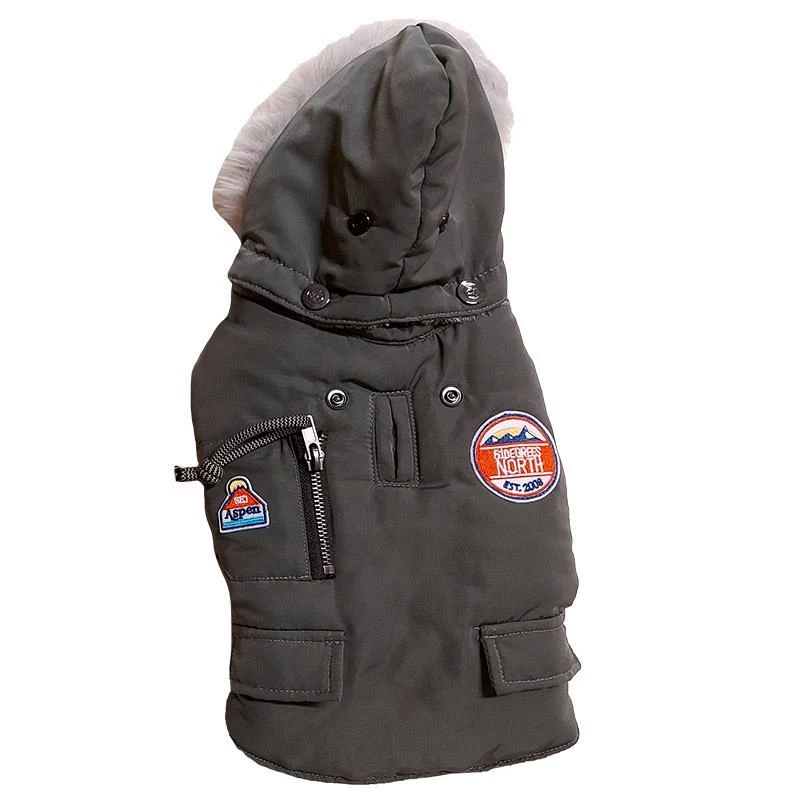 De hondenjas bestaat uit 100% polyester en heeft een stijlvolle (neppe) bontkraag. Je doet het jasje gemakkelijk aan en uit door de sluiting met klittenband.