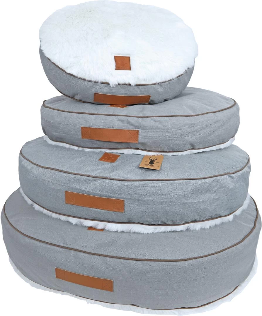 De Boony EST. 1941 hondenkussen Dreamer is een extra comfortabel ligkussen wat aan beide zijden gebruikt kan worden. Zo kun je bijvoorbeeld in de winter de warme pluchen zijde boven leggen en zomers de ander koelere zijde. Dit kussen past bovendien ook in de ovale manden van Boony EST. 1941. De kleinste maat (55 x 45 cm) is ook geschikt voor katten. Â