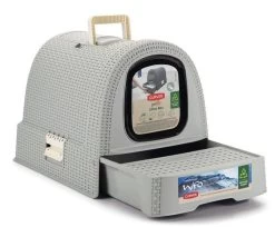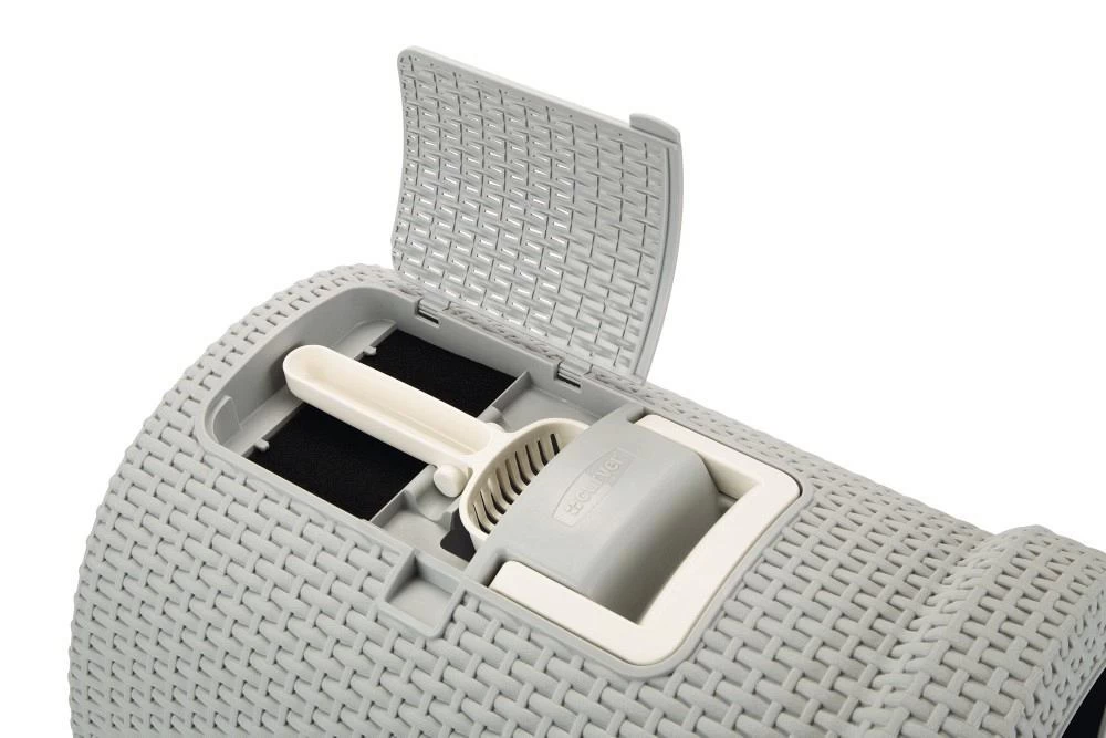 De bak is voorzien van een handig kliksysteem, waardoor de bak niet gaat schuiven en een lade om de kattenkorrels en uitwerpselen makkelijk te kunnen verwijderen. Om geurtjes te vermijden is de bak voorzien van een geurfilter en een voorklep, waardoor jouw kat optimale privacy geniet. En heel praktisch: een bijbehorend schepje vind je boven in het opbergvakje naast het handvat.