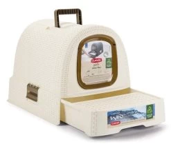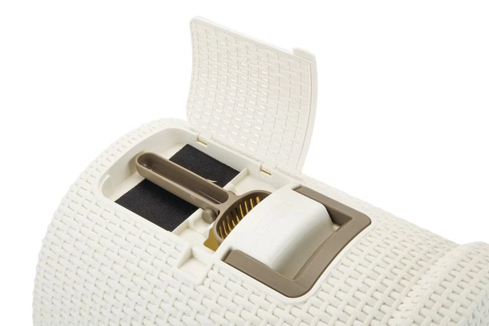 De bak is voorzien van een handig kliksysteem, waardoor de bak niet gaat schuiven en een lade om de kattenkorrels en uitwerpselen makkelijk te kunnen verwijderen. Om geurtjes te vermijden is de bak voorzien van een geurfilter en een voorklep, waardoor jouw kat optimale privacy geniet. En heel praktisch: een bijbehorend schepje vind je boven in het opbergvakje naast het handvat.