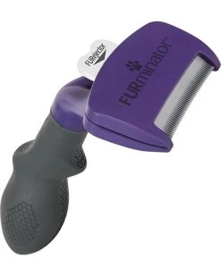 De FURminator Undercoat deShedding Tool voor middelgrote/grote kortharige katten kamt door het dekhaar heen om losse haren veilig en gemakkelijk uit de ondervacht te verwijderen zonder het dekhaar of de huid te beschadigen. De tool verwijdert tot wel 99% van de losse haren en helpt ook tegen haarballen. Gebruik 1-2 keer per week en 10 tot 20 minuten per keer op droog haar, als onderdeel van het 4-stappenplan FURminator Ultimate Hair Reduction System. De kam is geschikt voor middelgrote/grote katten van 4,5 kg of meer.