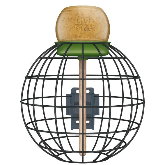 Lona V1 is een ronde voederkooi en biedt de kleine tuinvogels bescherming tegen hun natuurlijke vijanden zoals katten en grotere vogels. Ze kunnen rustig en ongestoord foerageren. Alleen kleine tuinvogels zoals mezen, vinken, mussen en soortgenoten passen door de openingen. Via de verticale trapezestick kunnen ze vervolgens naar de heerlijke pindakaas klimmen. Fantastisch om te zien!