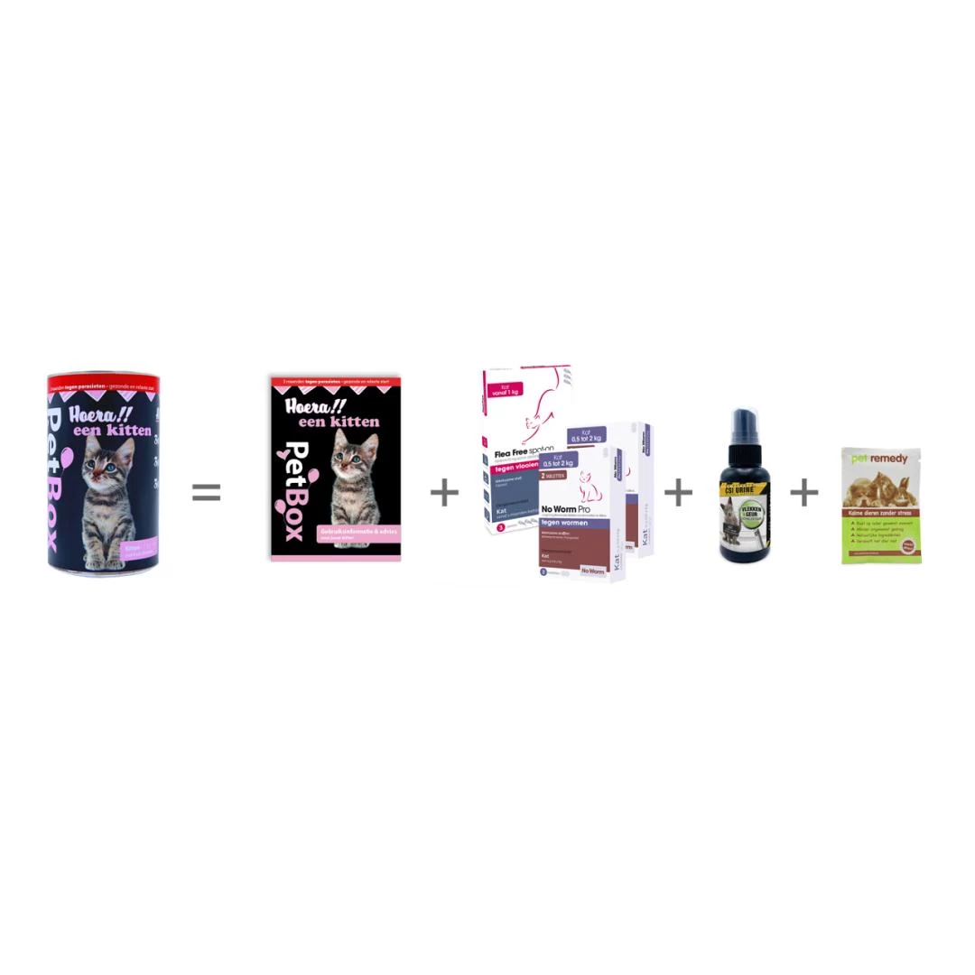 • Alles-in-1 verpakking tegen vlooien, teken én wormen,• Tot 3 maanden bescherming,• Geschikt voor alle kittens vanaf 2 maanden oud,• Inclusief CSI Urine vlek- en geurverwijderaar en anti-stressmiddel van Pet Remedy!
