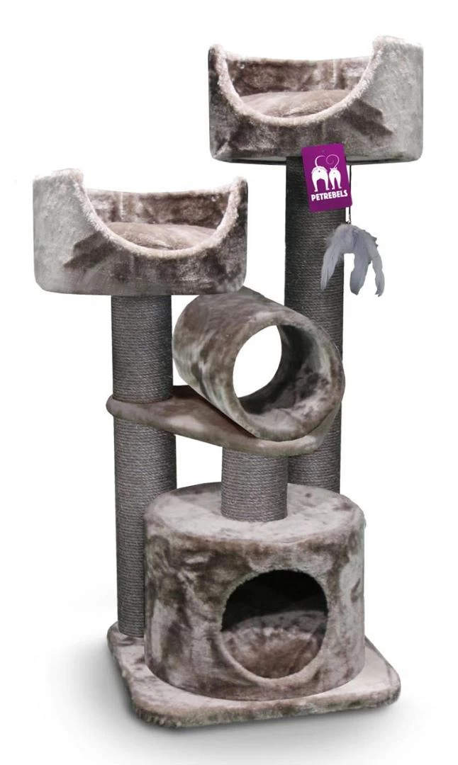Twee luxe divans met uitneembaar kussen bovenin zorgen er voor dat je lieveling op de uitkijk kan gaan zitten. Een slaapruimte voor een middagdutje en een speelrol maakt het al snel een waar feest voor je kat.
