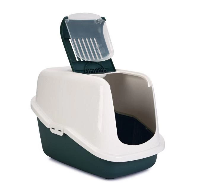 De Savic Nestor kattenbak van Beeztees is een mooi vormgegeven kattenbak. Bij deze kattenbak is het niet nodig om de gehele bovenkap te verwijderen als je het kattentoilet wilt schoonmaken. Je kunt namelijk het deurtje en het binnenste gedeelte van de bovenzijde in een handomdraai los maken om deze schoon te maken. Het los geklikte gedeelte kun je omhoog duwen, zodat je er gemakkelijker bij kunt.