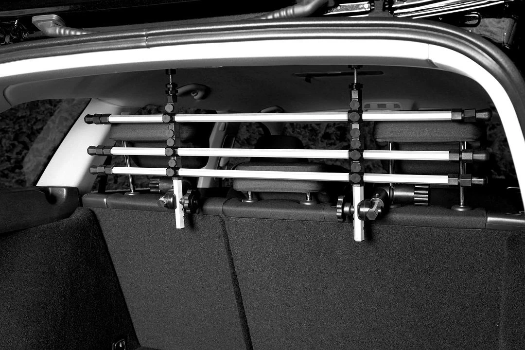 Het autorek bestaat uit drie delen en is geschikt voor het vervoeren van dieren of bagage in de koffer. Het rek zorgt dat het in de kofferbak blijft en niet naar voren komt in de auto.